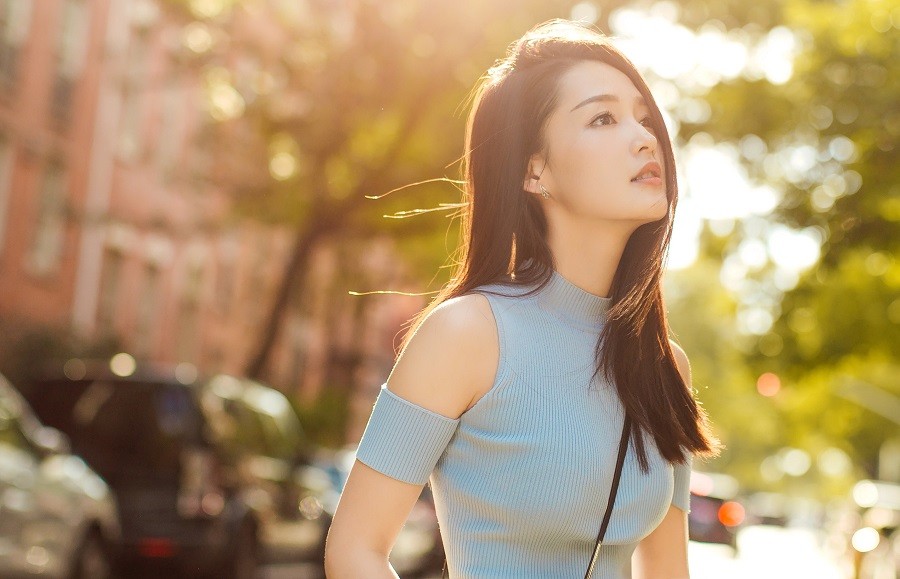 李沁低头浅笑瞬间,温柔气息与雾霾蓝色调交织出宁静氛围 李沁坐在窗边光影交错,雾霾蓝上衣显得柔和而高级 李沁街头随意行走,整体造型简约时尚,充满春日活力 李沁转身瞬间抓拍,雾霾蓝大衣衣摆划出优美弧线
